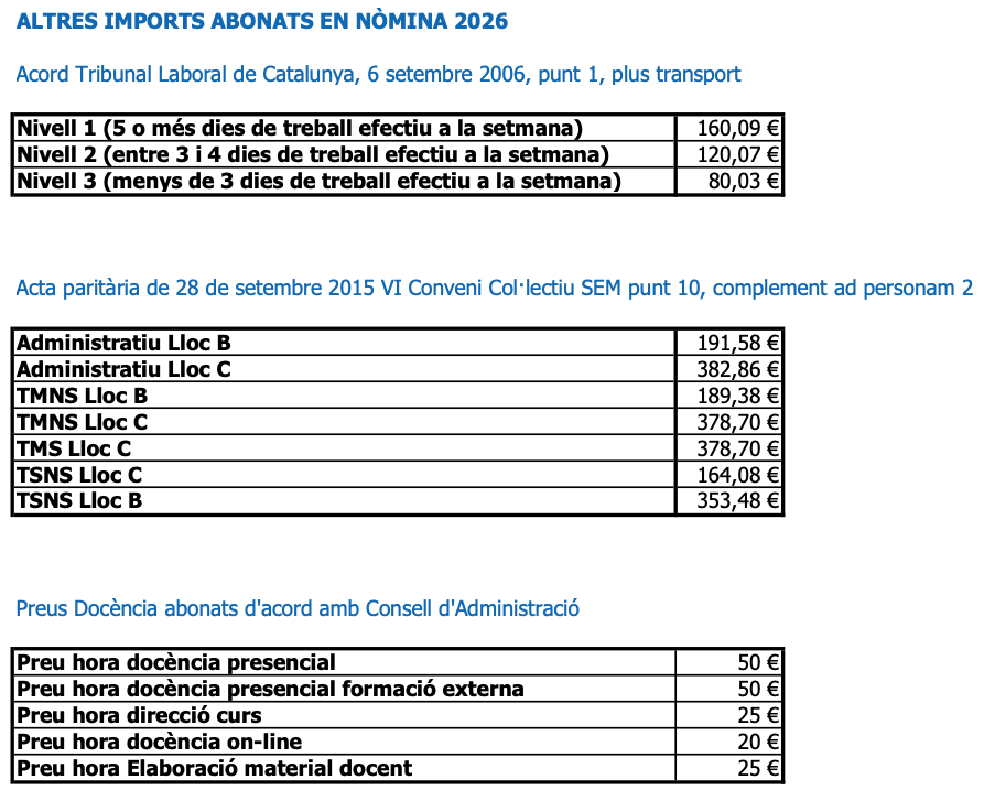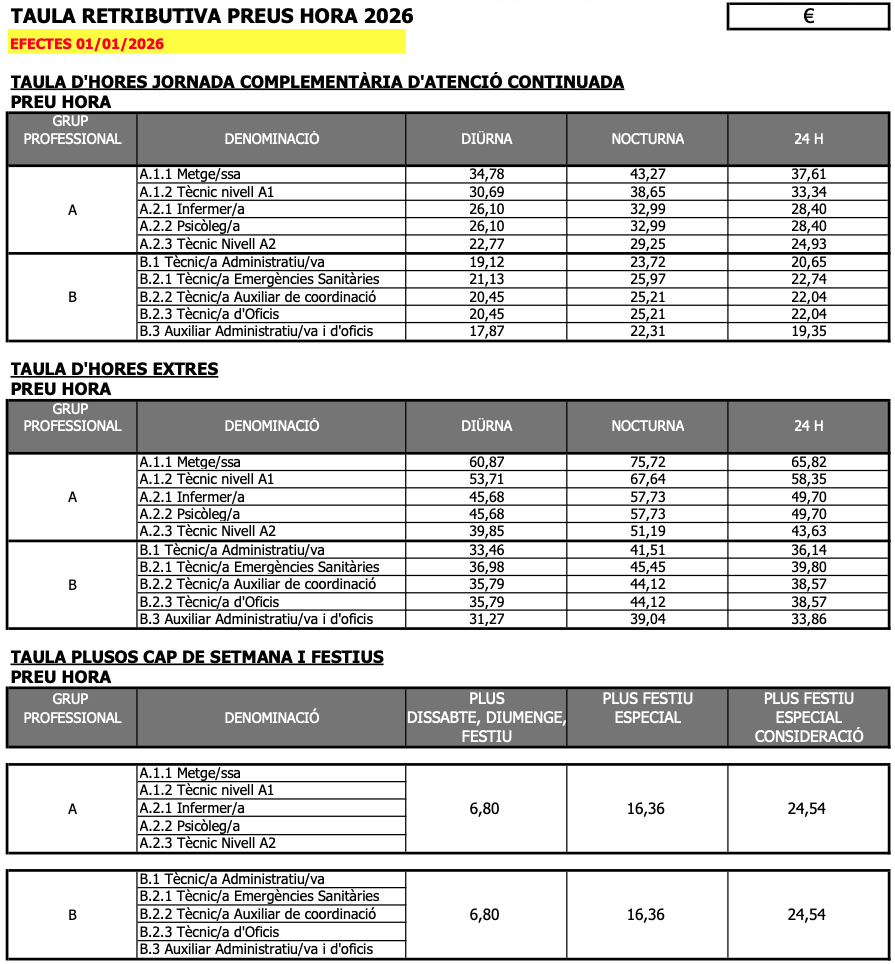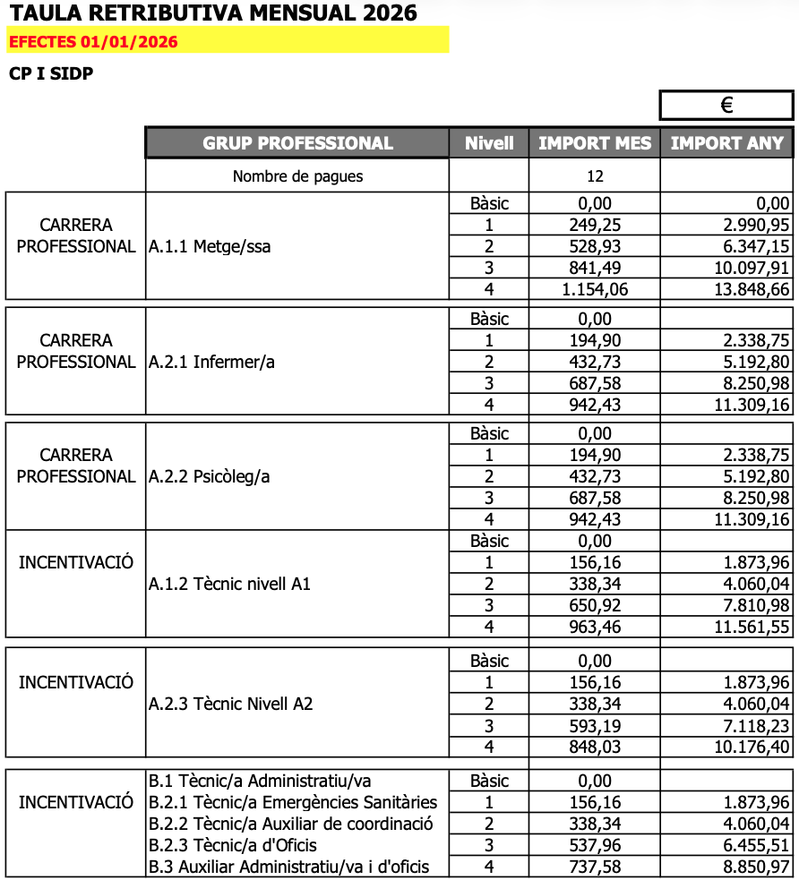 Al document trobarĂ s les taules salarials actualitzades a 2026.