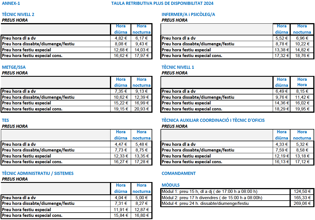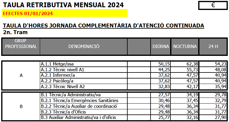 Taules retributives d'hores de jornada complementària d'atenció continuada (JAC) (preu/hora)