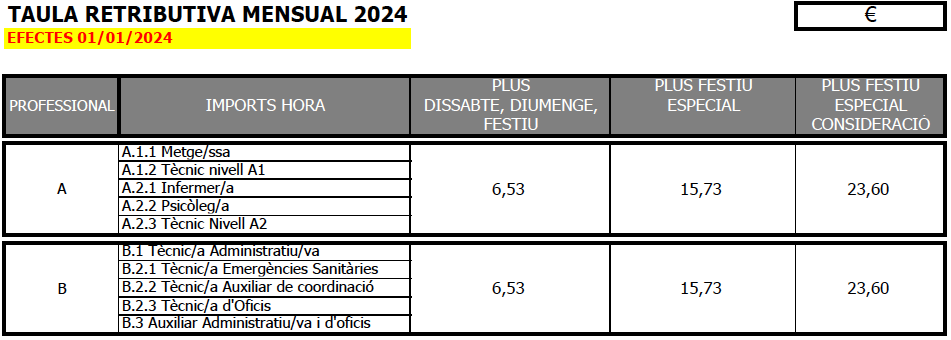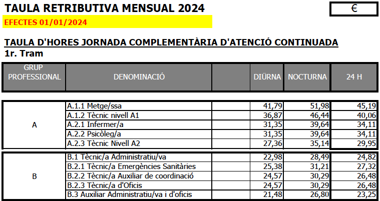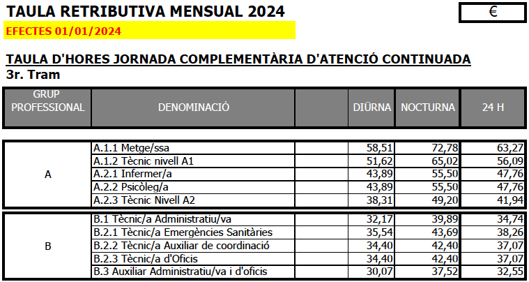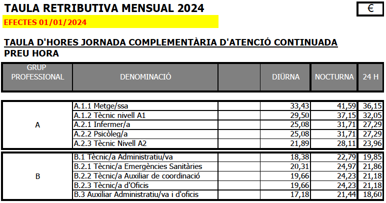 Taules retributives MENSUALS Metge/essa, Infermer/a, TES